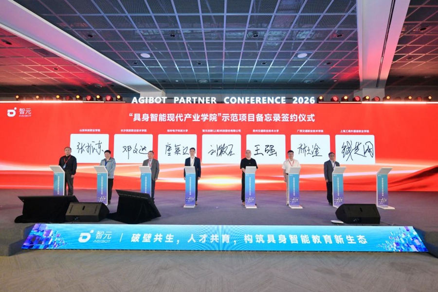 在日前举行的2026智元全球合作伙伴大会上,上海工商外国语职业学院和桂林电子科技大学、广西交通职业技术学院等6所重点合作院校,现场与智元创新(上海)科技股份有限公司集体签署“具身智能现代产业学院”示范项目备忘录,全力培养适配具身智能产业发展的高素质技术技能人才,助力上海打造具身智能产业发展高地。