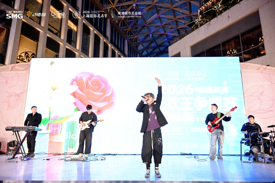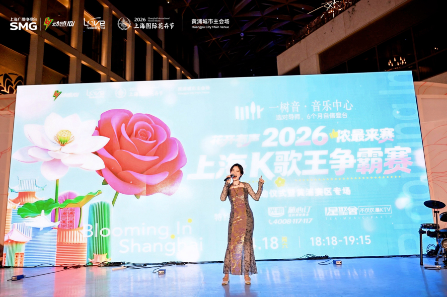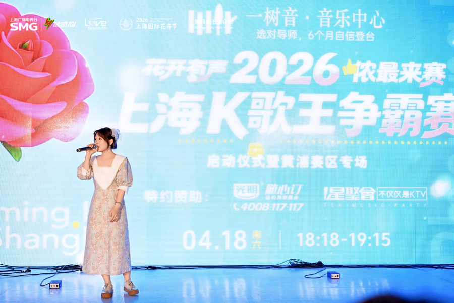 4月18日晚,伴着春日花海与动人旋律,“花开有声 侬最来赛”2026上海K歌王争霸赛启动仪式暨黄浦赛区专场在新天地东台里举行。