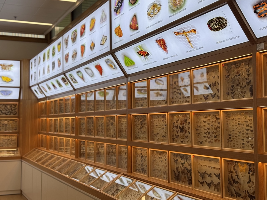 浦东新区青少年活动中心“昆虫探索馆”,2万多件标本在透明匣子里舒展着斑斓的翅膀,宛如一座溢彩流光的“暗夜博物馆”。馆长张宁老师小心翼翼地从层叠的盒子底端抽出一只不起眼的小木盒,指出盒中的灰色蛾子:“看,这就是我们采到的新物种——白端浪缘尺蛾。”
