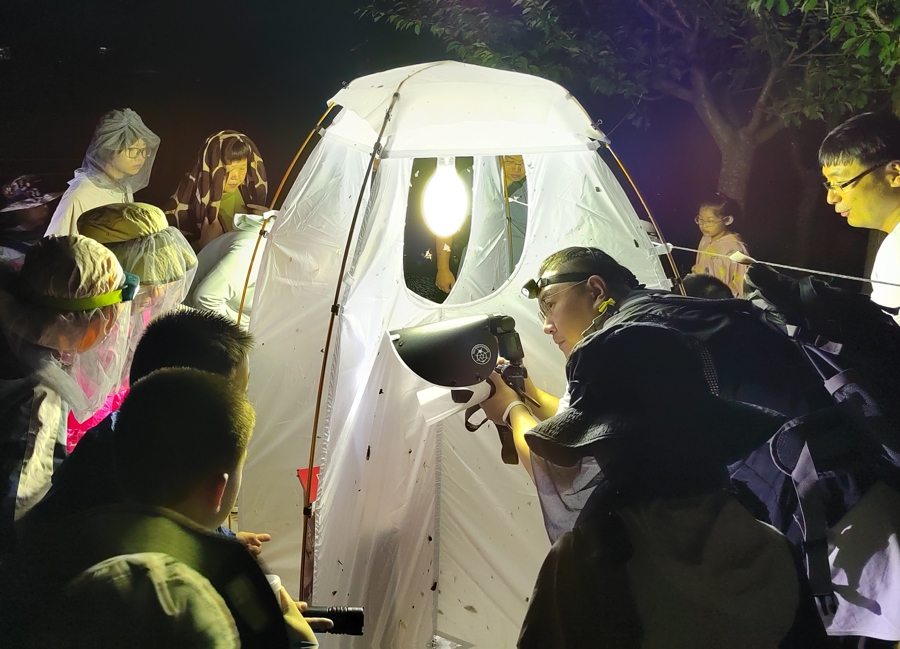 上海虫迷“朋友圈”日益壮大,光是张宁的工作室就集结了近千名爱好者。张宁和他的“昆虫梯队”现在“野心”更大了:相比蝴蝶,蛾类的研究一直都颇为冷门,预估我国有2万余种,但已知却仅有三成,所以,他们要搭建“中国蛾类名录数据库”。目前,工作室已经着手整理多达10万份的影像记录与实物标本。为了摸清蛾类家族的家底,他们甚至联合家长志愿者,研发出了具有国家专利的移动电源LED诱捕设备,将科考的触角延伸至更深远的荒野。